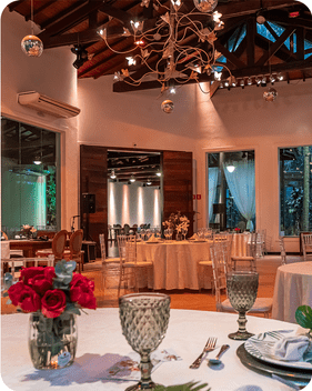 Salão: comporta até 300 pessoas em Almoço/Jantar e até 400 em coquetel